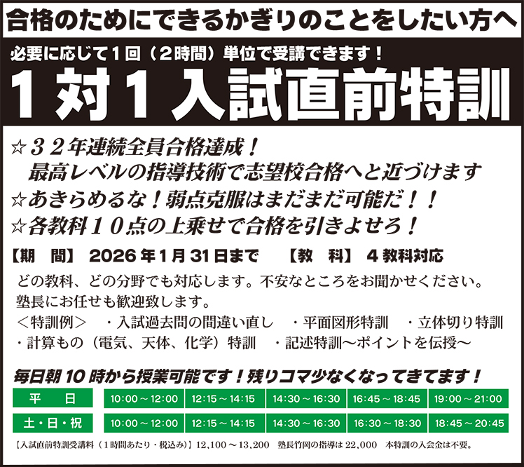 1対1入試直前特訓